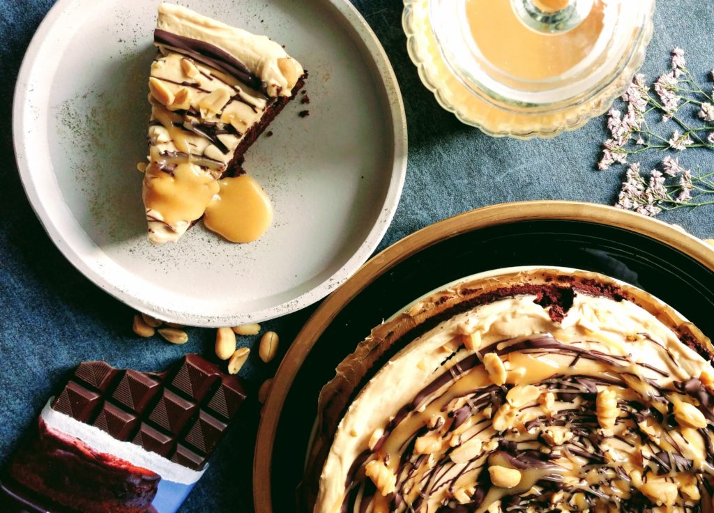 Schokoladenkuchen getoppt mit Karamell und Erdnuss – so klingt der Himmel.