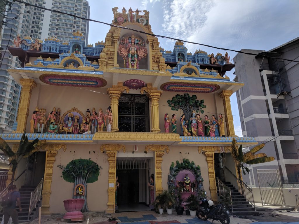 Am darauf folgenden Tag besuchten wir den ältesten hinduistischen Tempel im indischen Stadtteil Brickfield. Leider hätten wir ihn aufgrund einer laufenden Zeremonie erst Stunden später besichtigen können. Die indischen Gläubigen nahmen uns aber sehr freundlich in einem anderen Tempel auf und segneten uns erstmal. Die Kinder bekamen Süßigkeiten und wir alle einen weißen Punkt auf die Stirn. Langes Leben garantiert! Yeah!