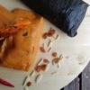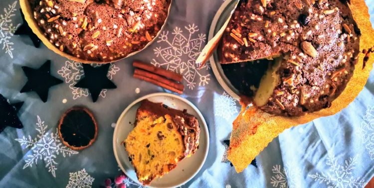 Mein Panettone ist vegan, gleiches Rezept aber statt Eiern nehme ich Eiersatz / Sojamilch 1:4 und vegane Butter. Etwas Kurkuma, für die Farbe.