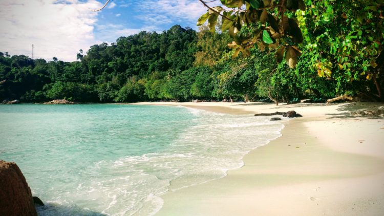 Ein Shuttle fährt ständig zum Strand. Der Weg ist zwar kurz, dafür aber über einen Berg. Es führt nur eine Straße über diesen, mitten durch den Regenwald. Und dort sitzen dann auch mal kleine Äffchen in den Bäumen. Im Wasser ist man immer wieder umgeben von Fischen und die Bucht ist einfach wunderschön.