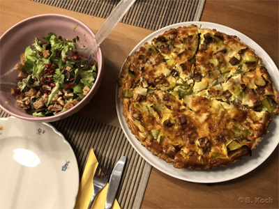 Dazu gehören auch die zahlreichen Tartes. Eine der bekanntesten ist sicherlich die Quiche Lorraine. Den Klassiker hat uns Britta von Brittas Kochbuch mitgebracht. Und auch bei Katja von Kaffeebohne gibt es eine Zwiebel-Tarte. Wunderschön sind auch die kleinen Tarte Dijon von Conny. Zusammen mit einem kleinen Salat ist ein Stück Tarte oder eine kleine Tarte völlig ausreichend für eine Mahlzeit.