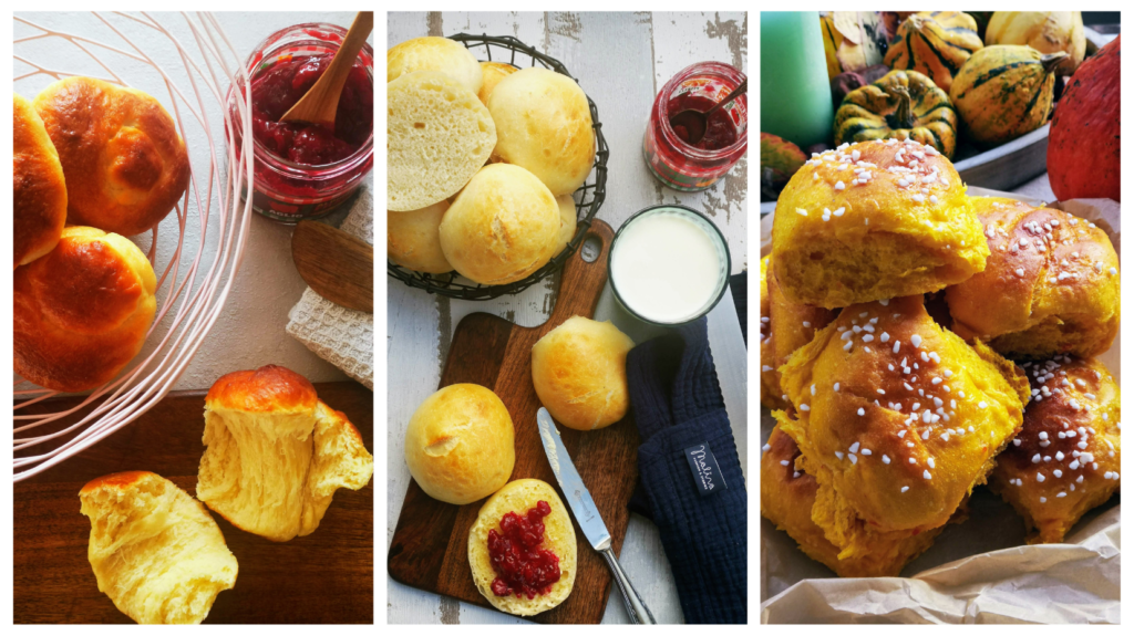 Ich werde in den nächsten Woche noch einige Rezepte veröffentlichen. Ich habe inzwischen Toast, Croissants, Brioche, Stollen, Butterkuchen, Kürbissofties und Milchbrötchen gebacken und während der Beitrag online geht, darf der Teig für einen Gugelhupf und für Weckmänner gehen. Das letzte Experiment wird dann der Berliner Teig, den ich Euch rechtzeitig vor dem Jahreswechsel noch präsentieren werde. Lediglich das normale Brot konnte mich nicht überzeugen. Da fehlte das Aroma vom normalen Sauerteig.